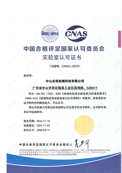 永恒檢測(cè)嚴(yán)格按照ISO/IEC 17025建立實(shí)驗(yàn)室管理體系,獲得CMA(國(guó)家認(rèn)證認(rèn)可監(jiān)督管理委員會(huì))認(rèn)證及CNAS(中國(guó)合格評(píng)定國(guó)家認(rèn)可委員會(huì))認(rèn)可,所出具的檢測(cè)報(bào)告具有法律效力和國(guó)際公信力。